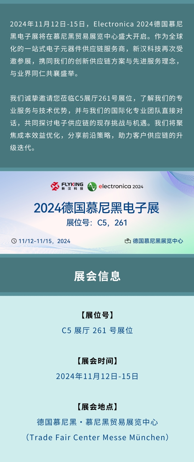 邀請(qǐng)函 | 新漢科技與您相約Electronica 2024德國(guó)慕尼黑電子展